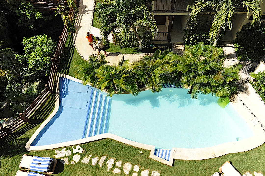 I trädgården finns en naturlig cenote där ett vattenfall porlar ner över stenarna. Om du har tur så ser du både fiskar och sköldpaddor i vattnet.