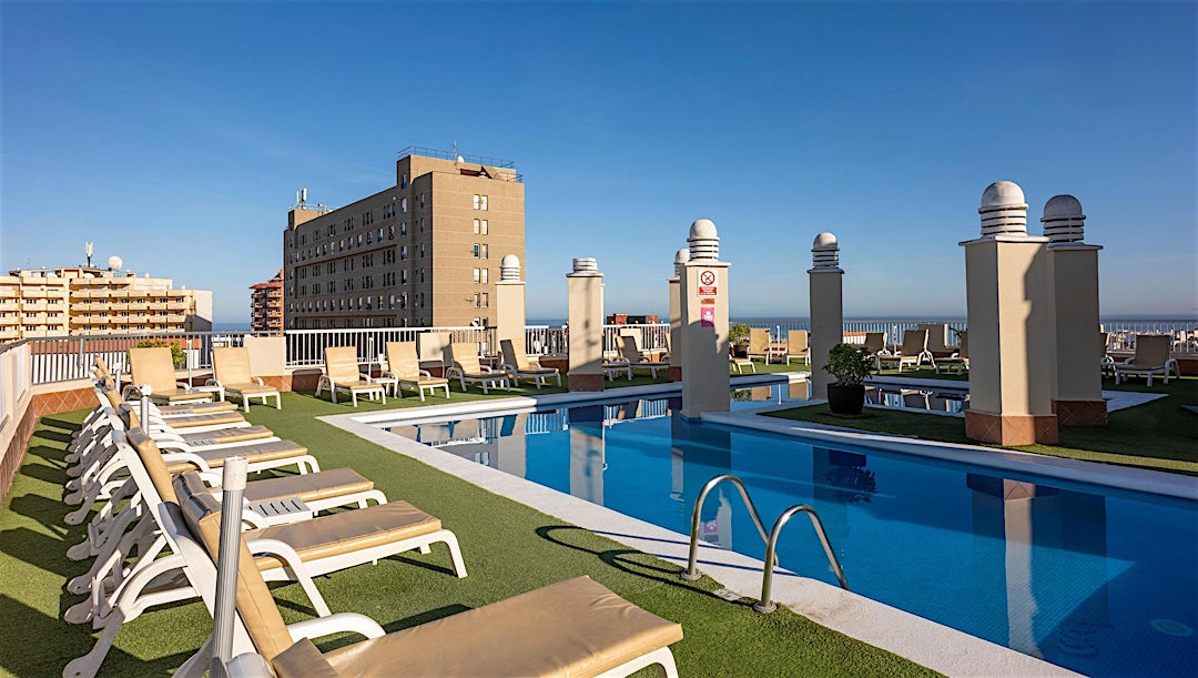 Här kan du njuta av den vidsträckta utsikten över bergen och mot havet från takterrassen och koppla av i en solsäng vid poolkanten på sjätte våningen. Vill du göra semesterlivet ännu mer bekvämt kan du även förboka frukost, halvpension eller All Inclusive.