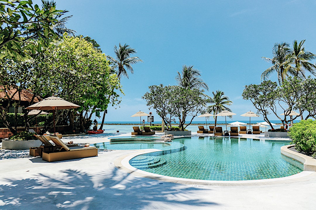 På Chaweng Regent Beach Resort finns två poolområden. Det ena ligger i trädgården och omges av ett trädäck där bekväma solstolar står uppställda. Den andra poolen ligger direkt vid stranden.